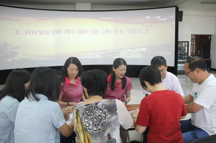 在会上,党总支书记李相勤和系主任万久玲首先分别向大家介绍了当前高校所面临的安全形势和存在的安全隐患,要求大家提高认识,牢记岗位职责,严抓安全一刻不放松,要把安全工作挂在口头上、落实到行动上。随后全体职工签署《工商管理系安全责任书》,进一步明确任务、落实责任。